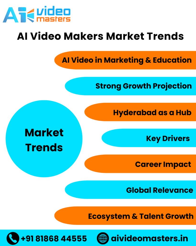 - Global Relevance: Worldwide, AI-powered video creation is revolutionizing content production, underscoring the demand for skilled AI video makers in Hyderabad.